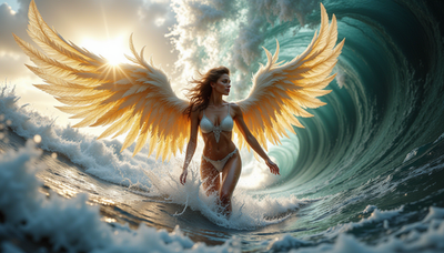 #portrait #beauty #angel #heaven #fantasyart #glamour #magic #body #ai #dailydeviation #dailydeviations #deviantart #ocean #reflection #wings #aiart #synthography