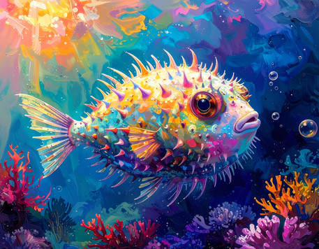 #digitalart #sea #cartoon #digitalpainting #ai #dailydeviation #dailydeviations #deviant #editing #pufferfish #vivid #wallpaper #aiart #art #synthography