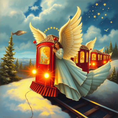 #magic #train #digitalart #wallpaper #fantasyart #sky #vehicle #beauty #steampunk #ai #angel #angelic #beautiful #clouds #dailydeviation #dailydeviations #death #deviant #editing #ethereal #heaven #heavenly #locomotive #peace #serenity #sparkles #vivid #aiart #art #synthography