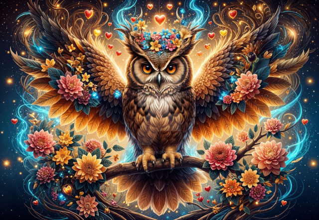 #digitalart #fantasyart #bird #owl #wallpaper #deviantart #wallart #portrait #magic #digitalpainting #ai #beautiful #dailydeviation #dailydeviations #deviant #editing #fractal #vivid #wings #aiart #art #synthography
