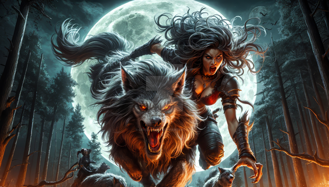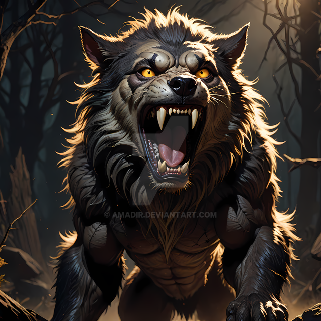 #ai #dailydeviation #digitalartwork #dinnertime #editing #fantasy #forest #fullmoon #horror #scary #sexy #werewolf #aiart