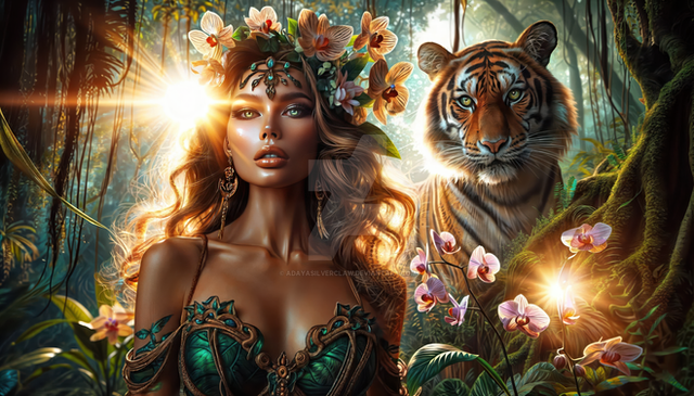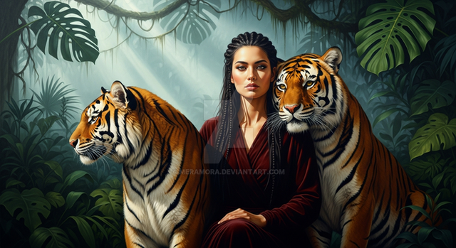 #characterdesign #portrait #magic #fantasyart #digitalart #fantasycharacter #beauty #warrior #digitalpainting #wallpaper #ai #dailydeviation #dailydeviations #deviant #editing #forest #guardians #tigers #aiart #art #synthography