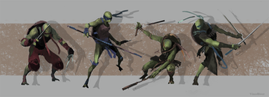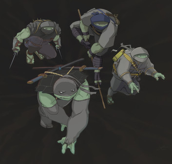 I like how you gave them all black bandanas but added a few stripes on each turtles respective color at the ends of their bandanas.