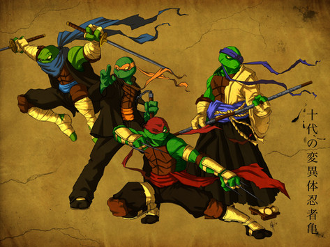 I used dan grading stripes for leo, geometric designs for donnie, hippy 60s circles for mikey and bloodsplatter for raph. I obssess over small details like that.