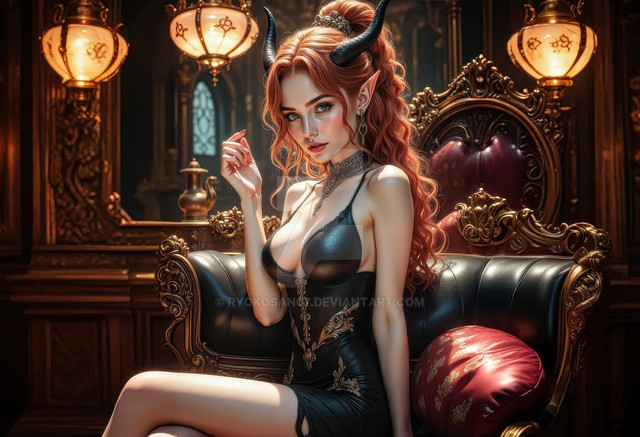 #demon #demongirl #succubus #largeboobs #largebreasts #monstergirl #orangeeyes #orangehair #succubusgirl