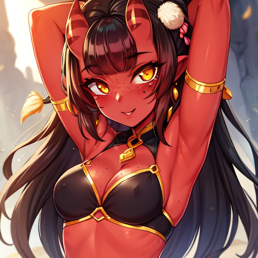 #blackhair #blackhairedgirl #cleavage #darkskin #demon #demongirl #devil #devilgirl #fantasygirl #largeboobs #largebreasts #monstergirl #nsfw #orangehair #succubusgirl #darkskinnedgirl #succubusdemon