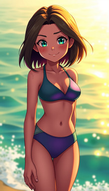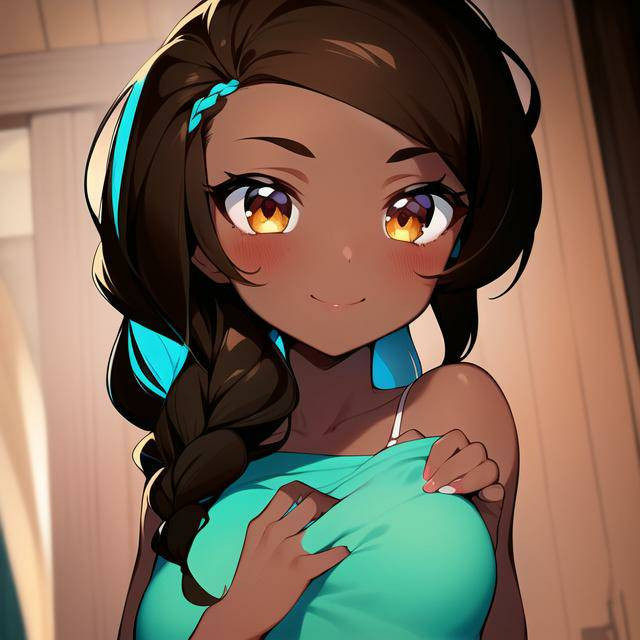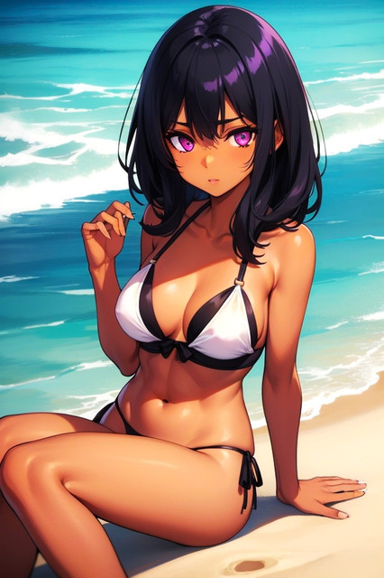 #devilgirl #monstergirl #orangeeyes #orangehair #smallbreasts #blushinggirl #beachbikini #seethroughclothes #darkskinnedgirl #brownskinnedgirl