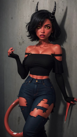 #blackhair #blackhairedgirl #darkskin #demon #demongirl #devil #devilgirl #largeboobs #largebreasts #monstergirl #orangehair #skirt #succubusgirl #darkskinnedgirl #succubusdemon