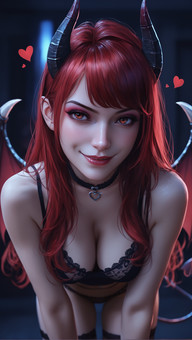 #devilgirl #monstergirl #nakedfemale #orangeeyes #orangehair #succubus #succubusgirl #topless #seethroughclothes #toplessfemale