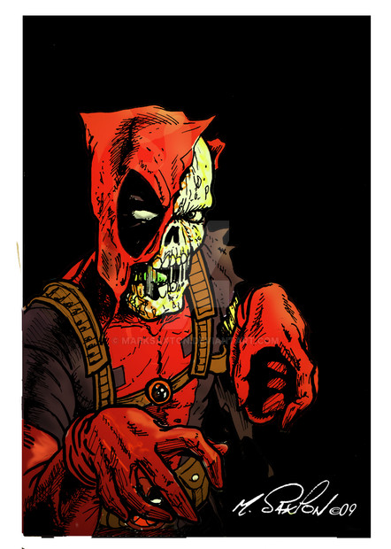 Deadpool 5-0. What more can you say. It's funny, I inked this in Las Vegas while loosing my ass at the tables. Glad something went right. The skull and cross bones are a photoshop brush I made. It was used a lot on some old Punisher covers. Figured it was time to use it again.Related content