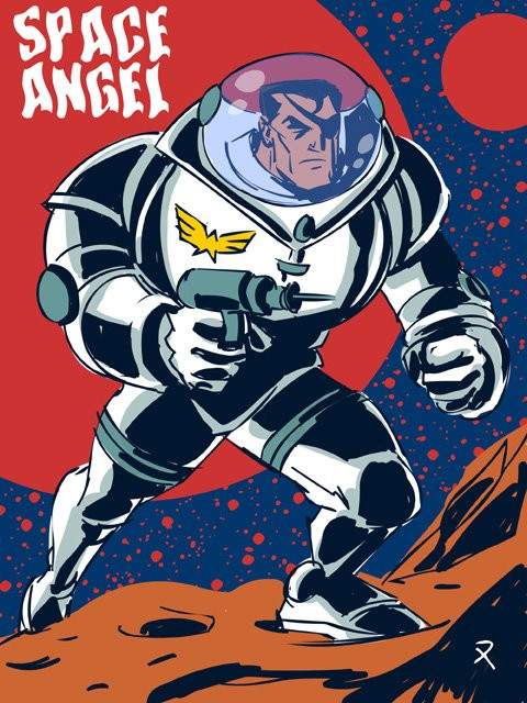 Did this for Comic Twart. The theme was "Space". So I did Space Angel. One of my favorite childhood memories.Google it to see human lips moving on a cartoon. Crazy!