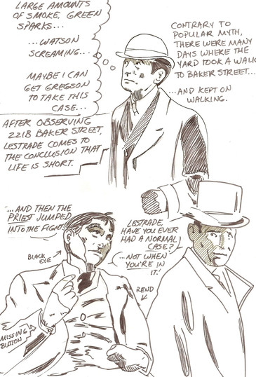 That pounce in panel 3 is just plain fabulous, but the London crowd scene and the young Lestrade are great stuff too, as is the rest.