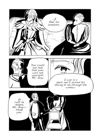 I loved this page, and I laughed out loud at the way the maid's expression got mirrored in the owl's in the last panel. They both look so scandalized!