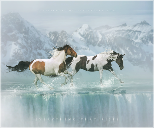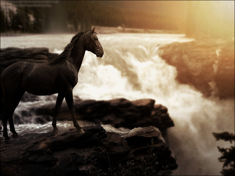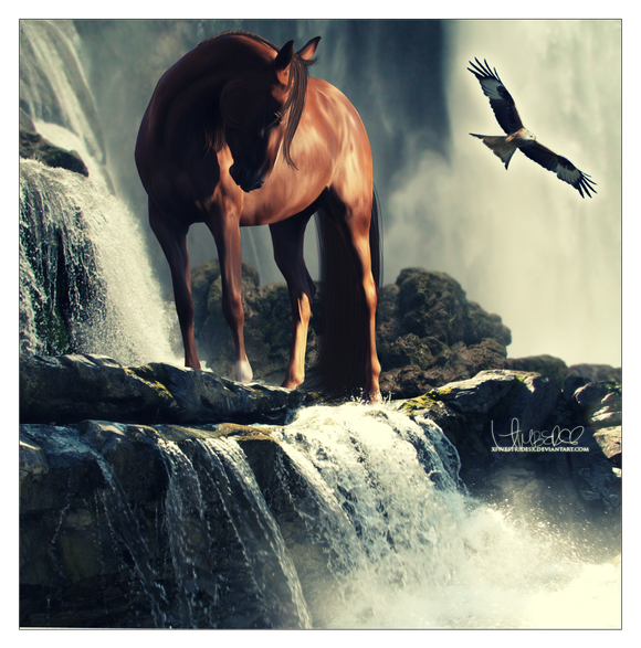 This piece is absolutely beautiful. I love how much emotion it holds... how the horse is hanging over the edge like that as if pondering over whether he should allow himself to be swept away from his sorrows. It's just... a very powerful photo. Probably one of your best yet.