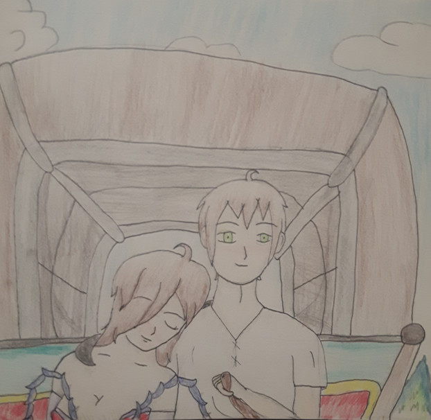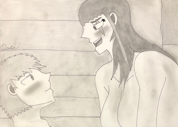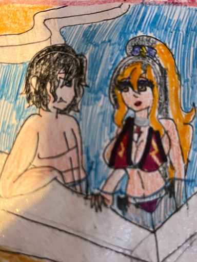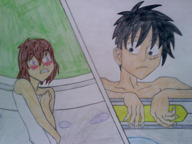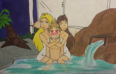a drawing for my friend his oc Shawn and Android 21 enjoying a hot spring together. I try my bust at this drawing but I feel that is something wrong if there I'm sorry for it. I do you all like the drawing.