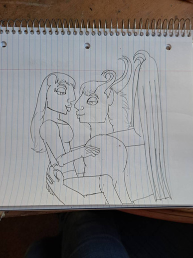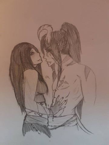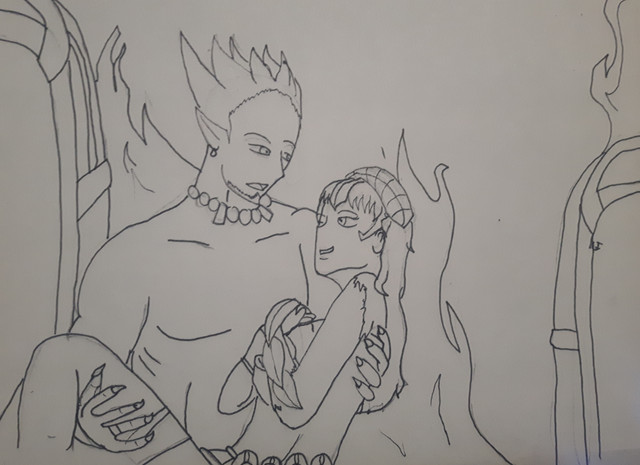 a drawing for my here is a pic of Tiamat being cuteΒ trapping Khatep as she sits on him. I really really my best with this drawing it was not easy to work with but U keep at it and I hope this i okay, I really enjoy working on this pic and I hope you all.