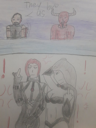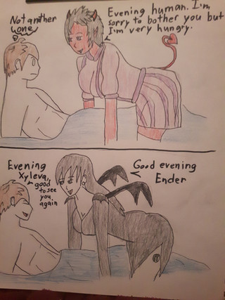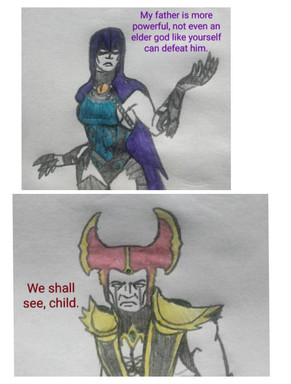 a drawing forΒ here Rayne asking lady death about her dad. yes a crossover drawing I hope this is okay if do get anthing wrong I'm sorry.