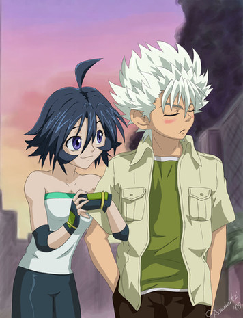 I wanted to draw Priss-BloodEmpress 's Momo again, but not all by herself and since I really enjoy imagining people's stories and stuff I wanted to draw a scene from her Bio.Also drawing Kyoya is fun so I went with the part where he challenges her to a Beybattle after she ran away with everyone's Beyblade's.