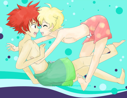 I think the scenario was the following..Helios complained about the fact how Ryuuga is enjoying himself in the water while he sits in the shadows but still feels way too hot and he is bored as well so in order to make him stop talking Ryuuga put this cold drink on his cheek xP of course he screamed once but I think it worked for him to stop complaining hehe