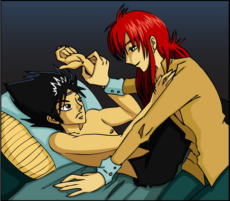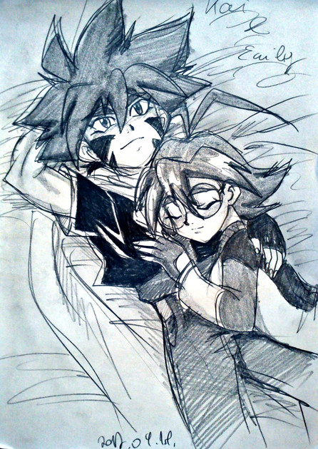 Trying to get all my old sketches finished...and there is a ton Kyoya x Chris because..I like them a lot.Kyoya is a pillow now ;n;
