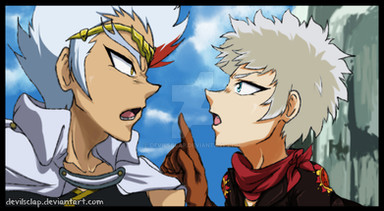 Ryuga looks ready to burn his opponents to ashes xD And Helios looks so calm and cool, like if he believed his opponents are weak and not worth his time