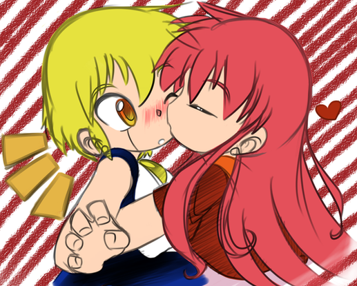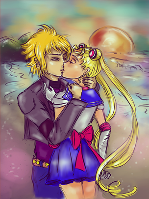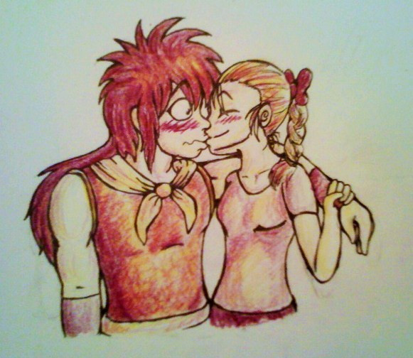 This was another redraw of a very old drawing and probably the only kissing picture I have of them because drawing kissing scenes is difficult?