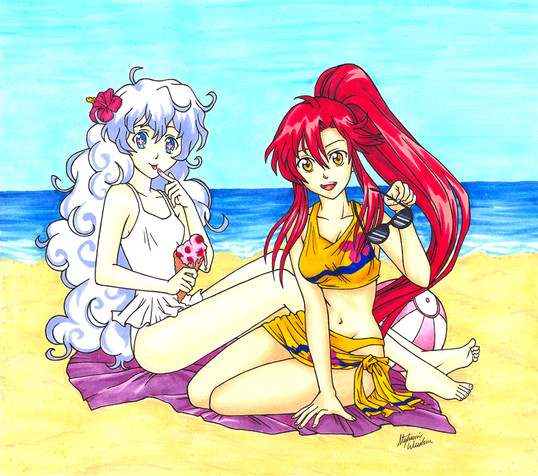 Summer Pictures are so fun to do I have to admit <3I thought I need more girls in my gallery so I drew Ren and Madoka in their swimwear and I really adore Madoka's! The reason why I probably started this in the first place.