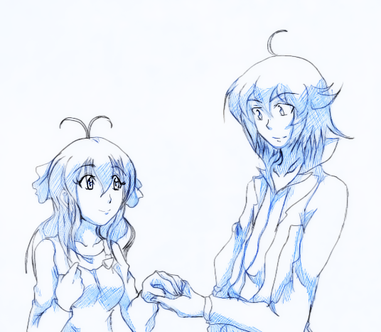 Sometimes sketching is way more fun than finishing a picture properly... This deserves no proper coloring anyway I think.I dunno if anyone ships them at all lol but I just wanted to draw Reiji but drawing a person alone is so boring so I had to add someone else and Hyoma has to suffer now