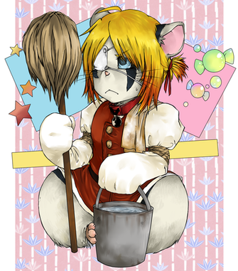He is wearing a chinese dress because I changed my mind back then to draw that instead of a maid dress..but I should draw the maid one too someday