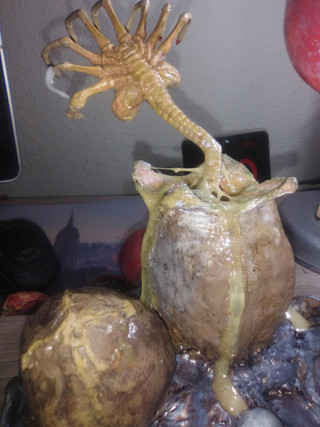My hand made, alien covenant inspired shadowbox frame with hand crafter aliens set in resin embryos in back-lit LED shadow box frame and movie poster.This is so badass!!!