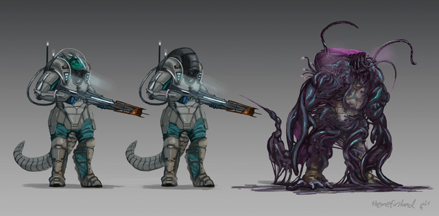 i'd have to admit the one in the middle had Quarian at first glance from M.E. but the more i looked they had a final fantasy *Yuke look to them haha