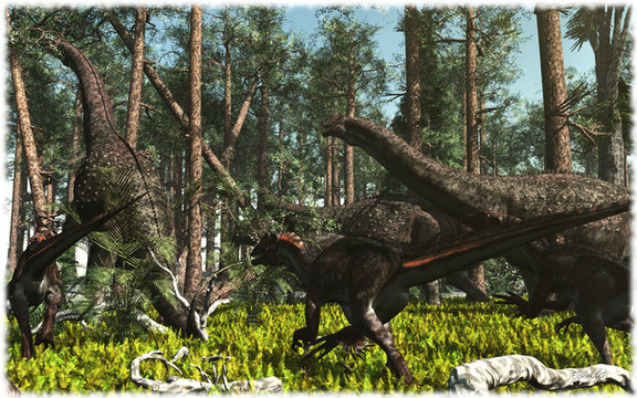 A pack of Utahraptors attacks a Astrodon.Β©Luis V. Rey