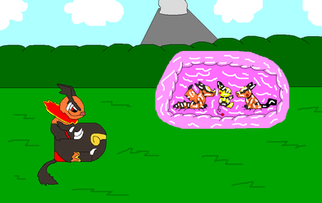 Made with DeviantArt muro Yup, I'm starting this series again. Gonna try to balance it out as best as I can. Anyhow, Thia evolved and we caught a Darumaka that I nicknamed Fireball. This is the aftermath of both of them after winning a few battles in the Battle Company and getting the Exp. Share.Related content