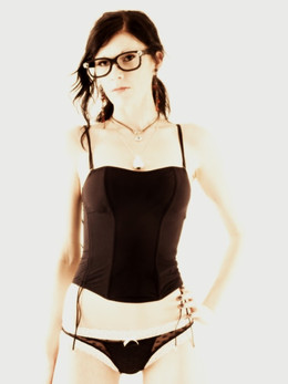 Love the look with the eyeware... make-up... panty is always a nice touch.