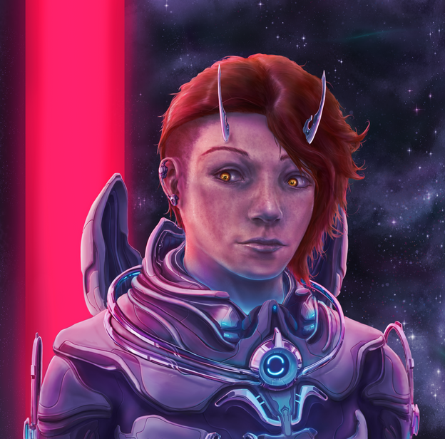 #blue #cyan #elvish #girl #helm #helmet #pink #purple #samurai #scar #scavenger #scifi #spacesuit