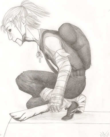 I picked the bottom left thumbnail. Went over everything roughly, trying to figure how everything looks. I was thinking they are having a gunfight in a tall abandoned building for whatever reason. ^^