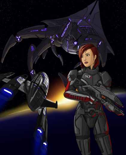 Wanted to draw sci fi, mass effect female sherpard and an almost pin-up. This is the result.5 hours on photoshop
