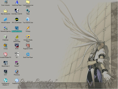 This is a pic of my current desktop (well actually it's different now--i'm constantly changing wallsBackground was found on www.animewallpapers.com . Winamp3 is open using a skin found here on the DA site, but I forget the name. The song that's being played is Dearest (Energized Mix) by the lovely Ayumi Hamasaki.