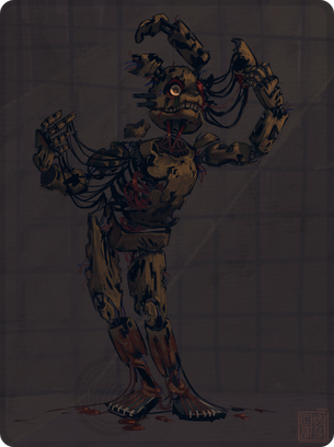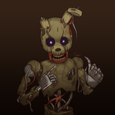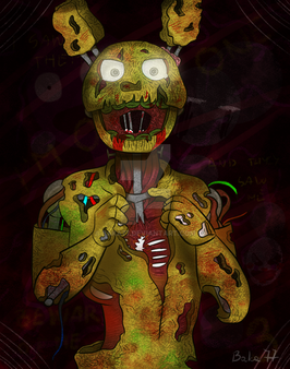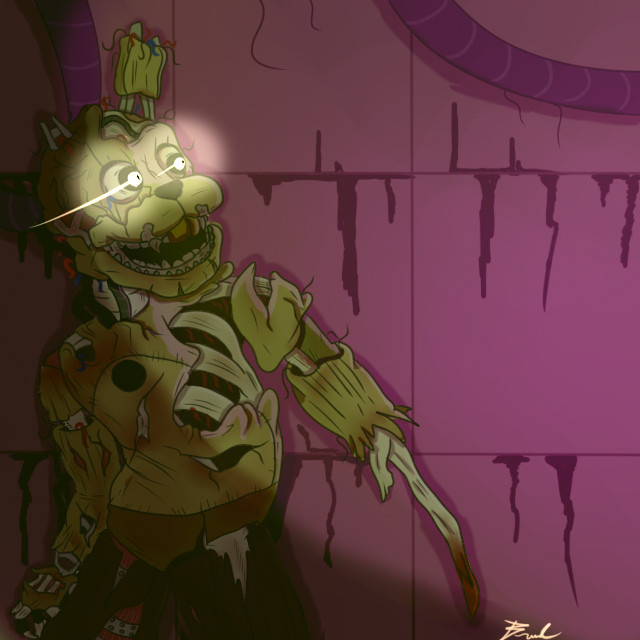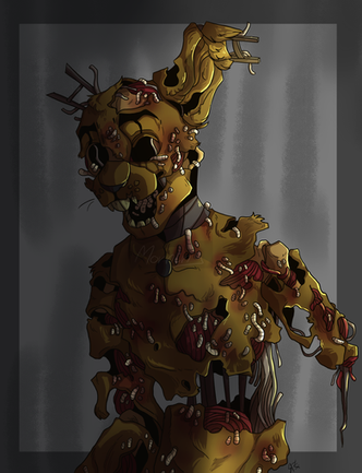 I'm working on the others, but screw it SpringTrap is more important! >:II always kind of wanted them to look intentionally nasty, like just full of gross and smelling like rats, DEATH, and old soda. I mean the Phone Guy says twice that they stink and I can't buy it looking at them, they look like someone cleans them at least once a week, even the withered animatronics look kinda clean. I mean I draw 'em cute but I prefer to draw creepy/cute and look at gorey nasty. And that's Springtrap, he's gross, nasty, falling apart at the nails, and I genuinely want to hug him till his head falls off... or he strangles me.