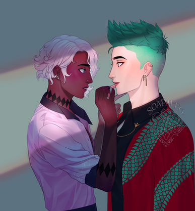 #cute #deviousvampire #digitalillustration #illustration #malecharacter #malexmale #originalart #originalcharacters #simplebackground #couplesart #february2021 #2021art