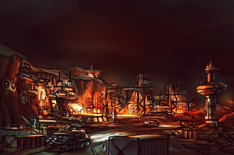 Some military organisation base in some fallout-style Postapocaliptic Desert. Art piece for an iOs/Android game named Heavy Battle.This is a heavy mix of of overpainting, collage, and manual painting. A lot of stuff is happening there. At least i can say that i draw the helicopter without any overpainting