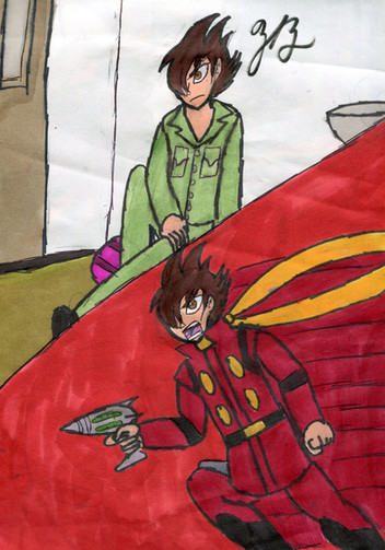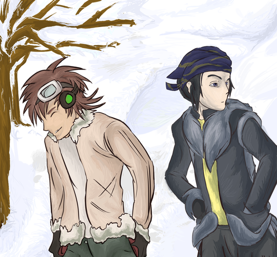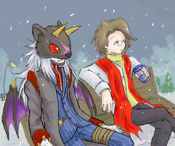 Yeah, more Digimon Savers flooding. Nothing says badass like a genocidal mad scientist and a demonic gangster koala. Astamon is probably one of (if not the) most tedious fucking thing I've ever drawn as far as line art. I just totally half-assed the coloring (well, the entire thing, but mostly the coloring) because I have such a short attention span.The original background was going to be them walking out of smoldering flames... but splashing around colors made that instead.