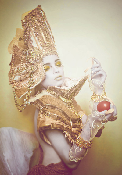 The woman in this photograph is faceless, she has her back to the world (the camera) and seems to be denying her fate: the apple (of course!), desire and condemnation suspended in mid air. This is the portrait of a crucial moment unresolved, of doubt eternal.