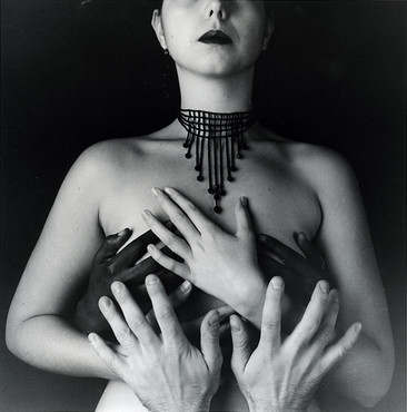 I think that without the necklace this shot would be conventional, somehow. A naked woman as an object of rapacious desire -or even envy.