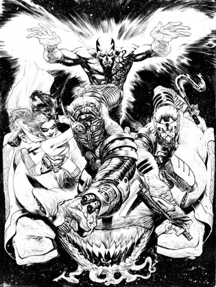 used almost every weapon in my arsenal on this commission. used brushes with indian inks, micron pens and brushes, nibs, and ball point pens. and a little whiteout here and there to bring out certain features. the paper cooperated perfectly. enjoyed this piece immensely. heres to hoping i get some more batman commmissions, cause i got some more batman in me