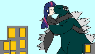 This is sooo cute!! Godzilla looks like he is having a great time!
