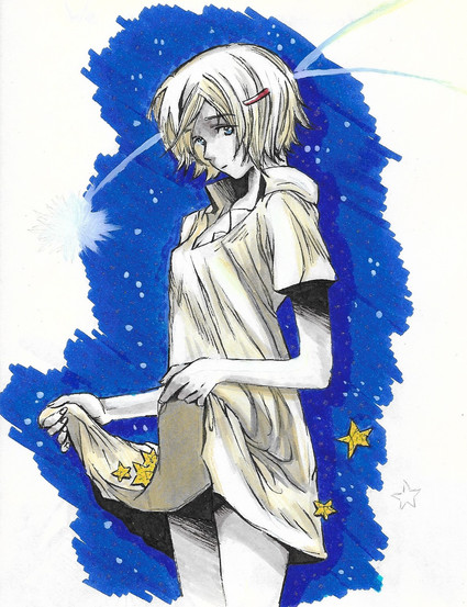 Pen lines didn't scan as clean as they should... T_TAnyway, Itsuki, in one of her well known poses/exposes, from Vol 2 of Masakazu Katsura's I"s manga. I drew this from the manga and then colored it with Copics, and made a little mistake