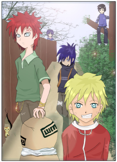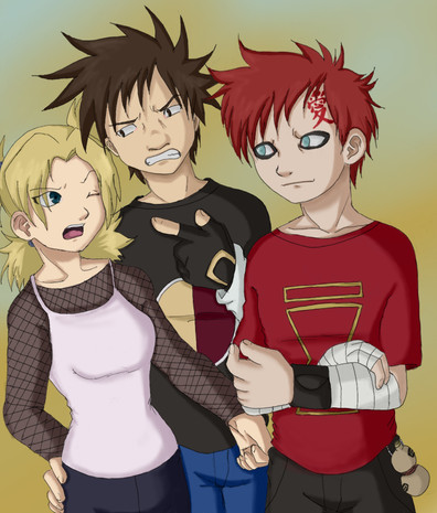 Heh, just messing around with their clothes and stuff. I wanted them to look different but still have those characteristic traits. But the perspective was kinda hard to do -_-;.The sand team's my favorite because Gaara just kicks so butt.