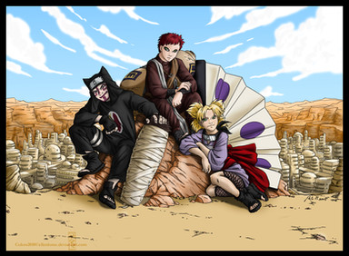 the outfits are really cool - altho kanky's is a bit odd. gaara's gourd looks kinda small too but i think that's just the perspective. all the same - it's a great pic of my fav team and i like it a lot.
