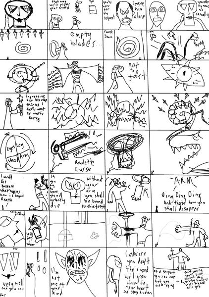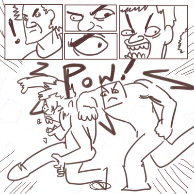 the black blots that's all over Jorgen's face is supposed to be blood. But sadly you can't color red with a black pen. It defies logic